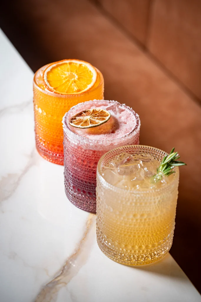 Artisanal mixology crafted with exotic fruits and botanical spirits.